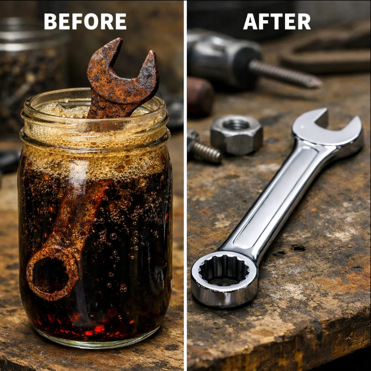 녹슨 물건을 콜라에 1시간에서 반나절 정도 담가두었다가 꺼내 마른수건이나 솔로 닦아내면 녹이 말끔하게 사라집니다. 녹이 너무 심하다면 담가두는 시간을 늘려보세요. 비싼 녹 제거제 없이도 훌륭한 효과를 볼 수 있습니다.