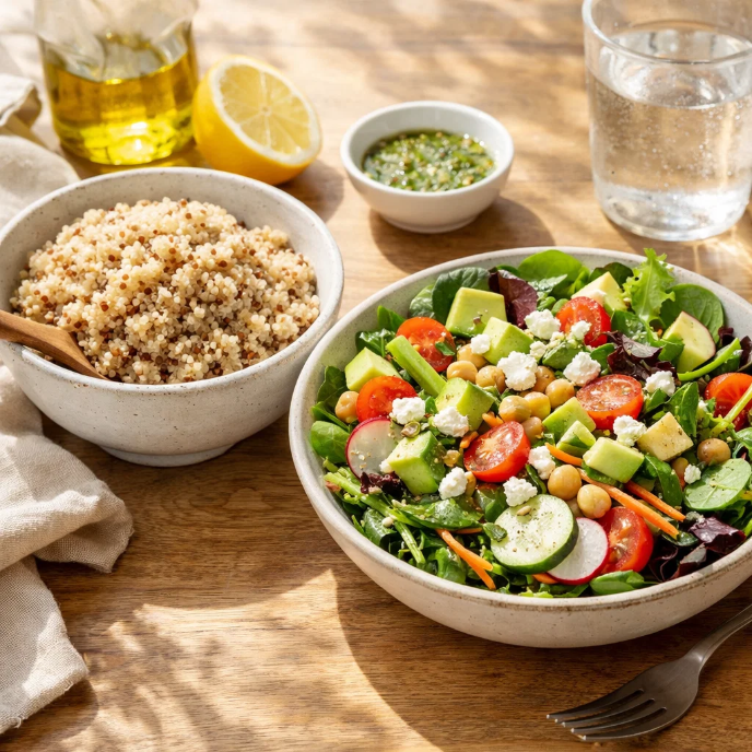삶은 퀴노아를 샐러드에 넣으면 식감과 영양을 동시에 챙길 수 있습니다.